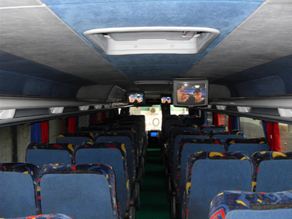expresso , estes veículos oferece 43 lugares com descansa-pés , 3 monitores,