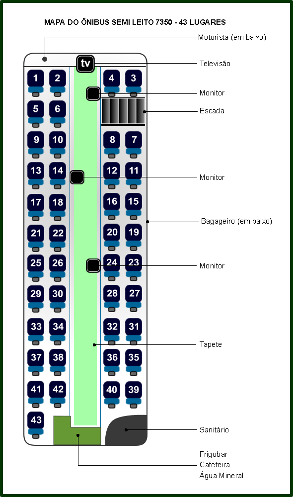O modelo Semi Leito, lançado recentemente possui toda a estrutura do padrão expresso , estes veículos oferece 43 lugares com descansa-pés , 3 monitores, 1 tv, cd, dvd, bebedouro, cafeteira, mantas, travesseiros, toillet, ar condicionado e água mineral durante todo o percurso, para garantir descanso absoluto, ao embarcar e desembarcar cada cliente recebe mantas e travesseiros , tudo isso somando ao atendimento de alto nível no embarque e desembarque, característico no padrão de qualidade da Expresso.